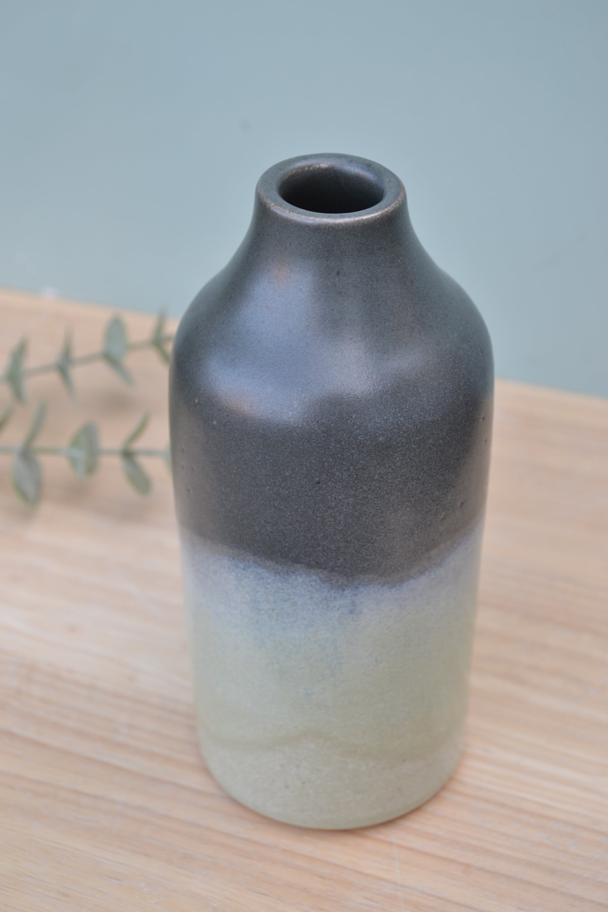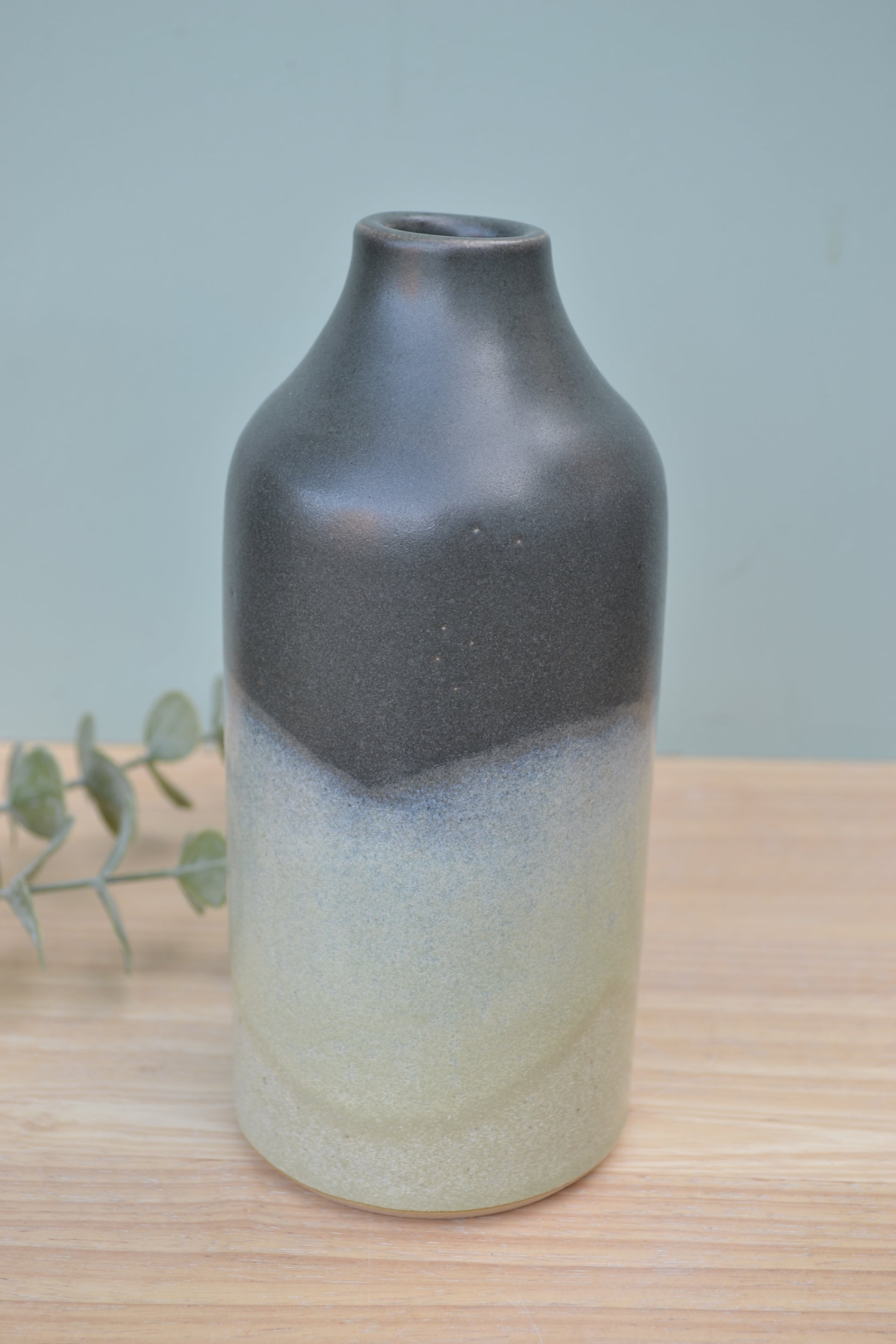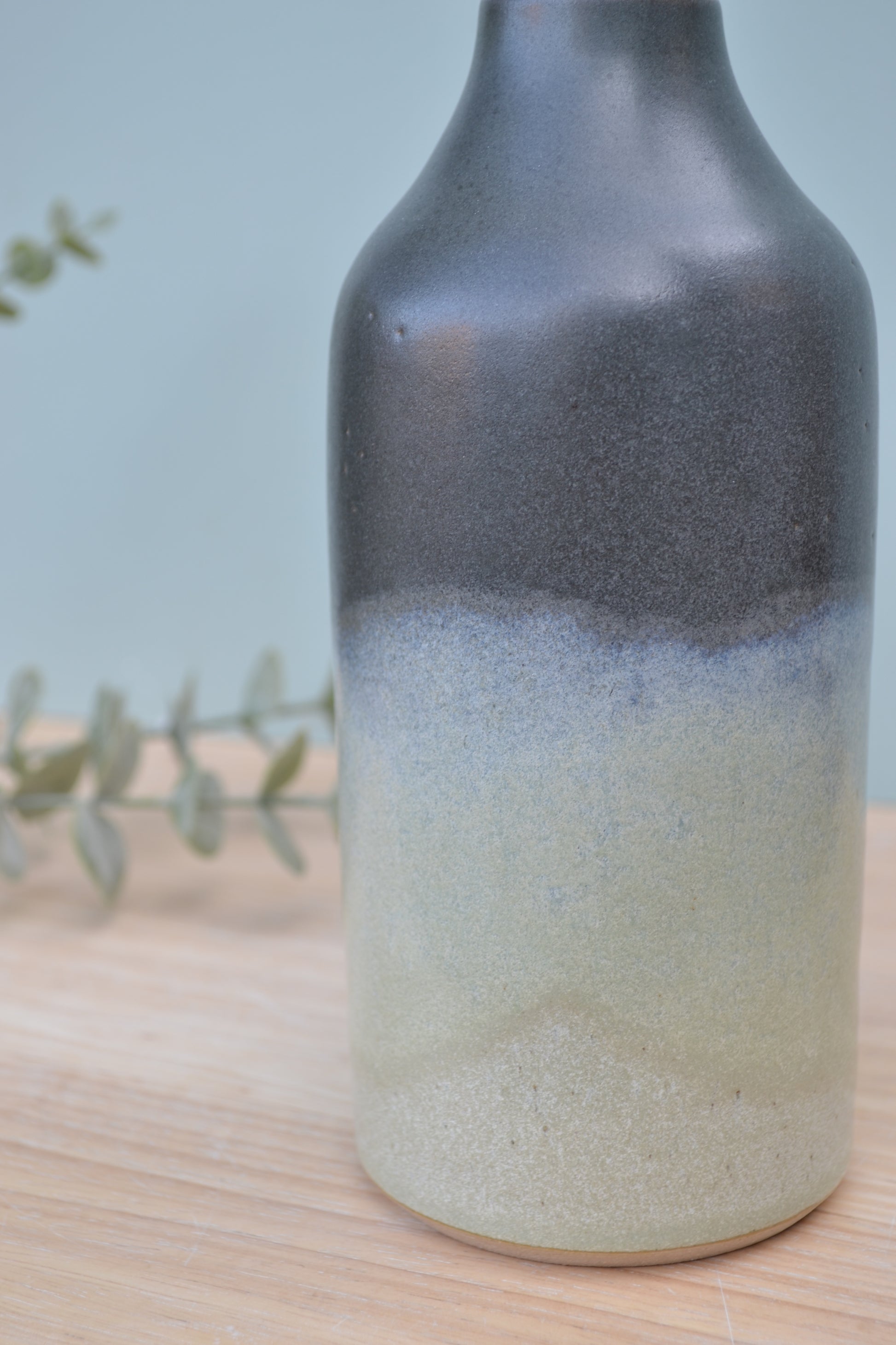 Hand-thrown stoneware bottle vase perfect for single-stem or dried flowers