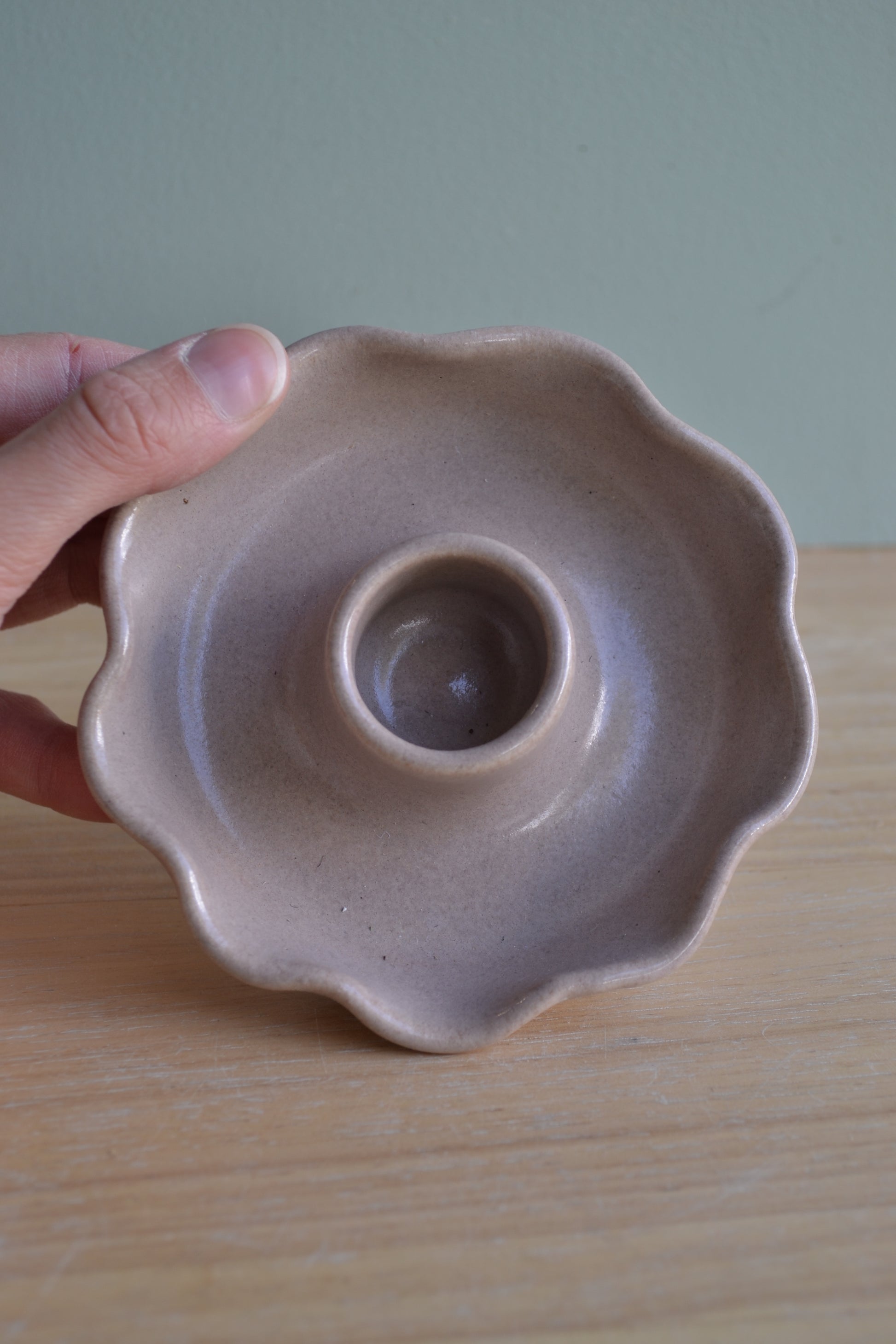 Hand-thrown white stoneware candle stick holder with my own unique dusty pink glaze.