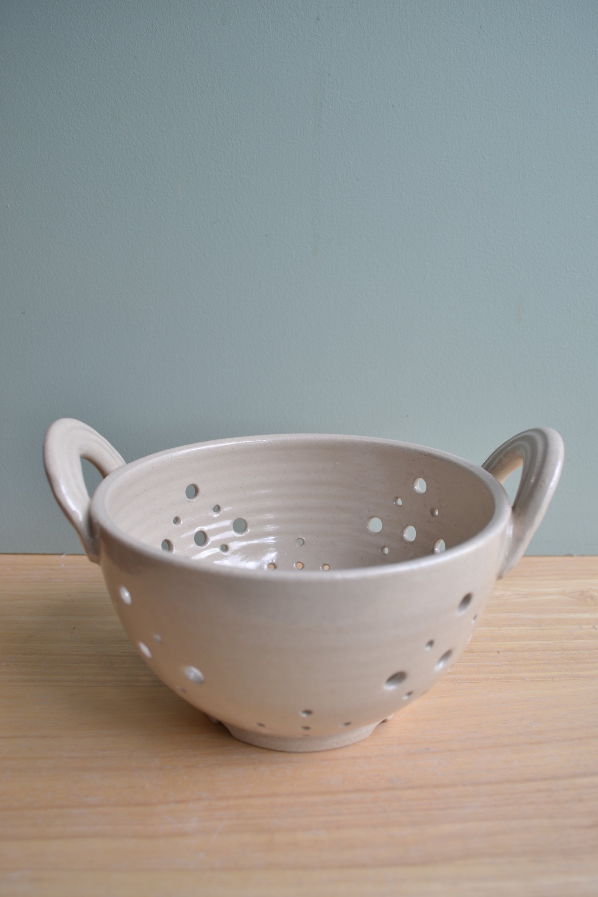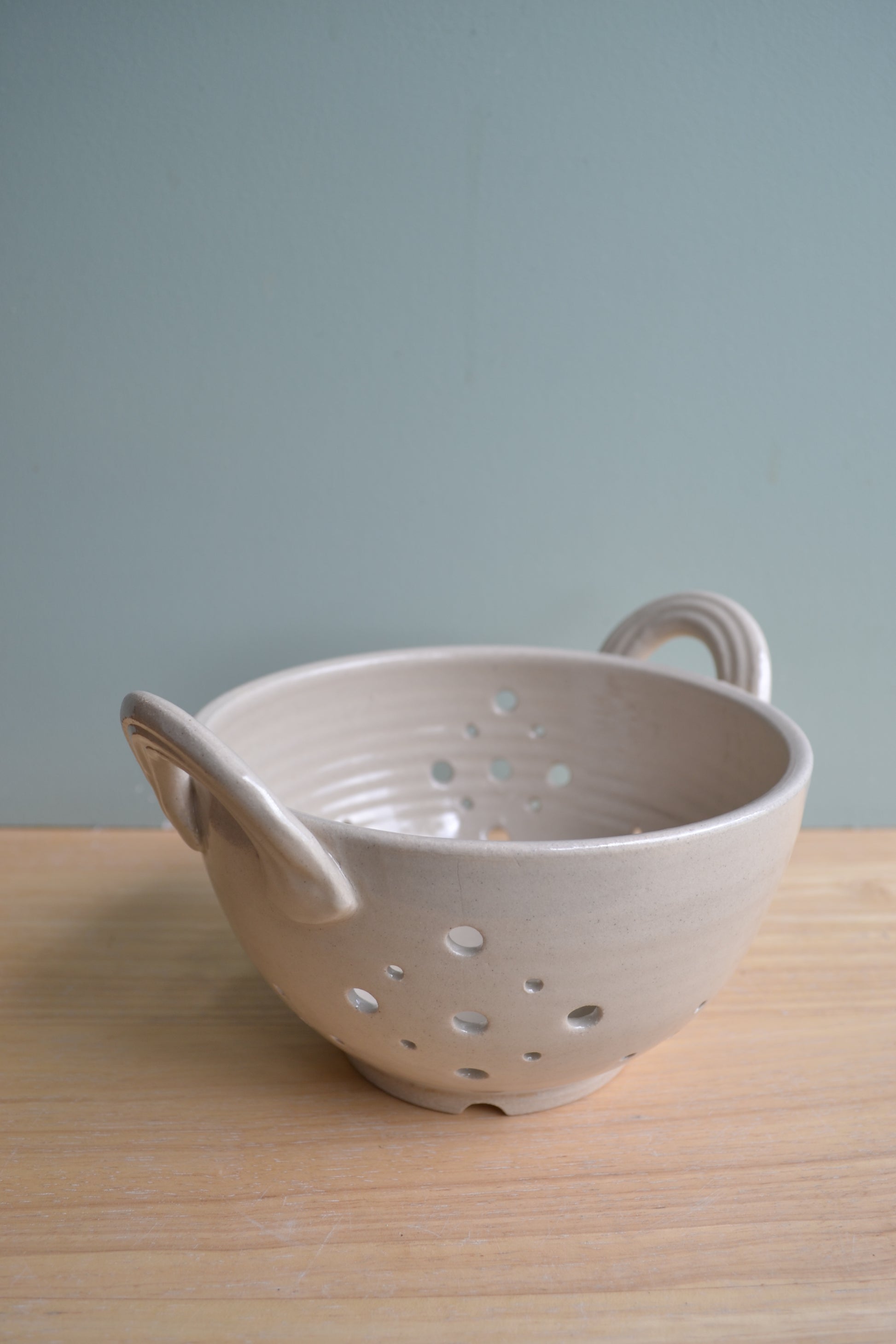 Hand-thrown white stoneware berry bowl decorated in a transparent glaze so the natural clay body colour shows through.