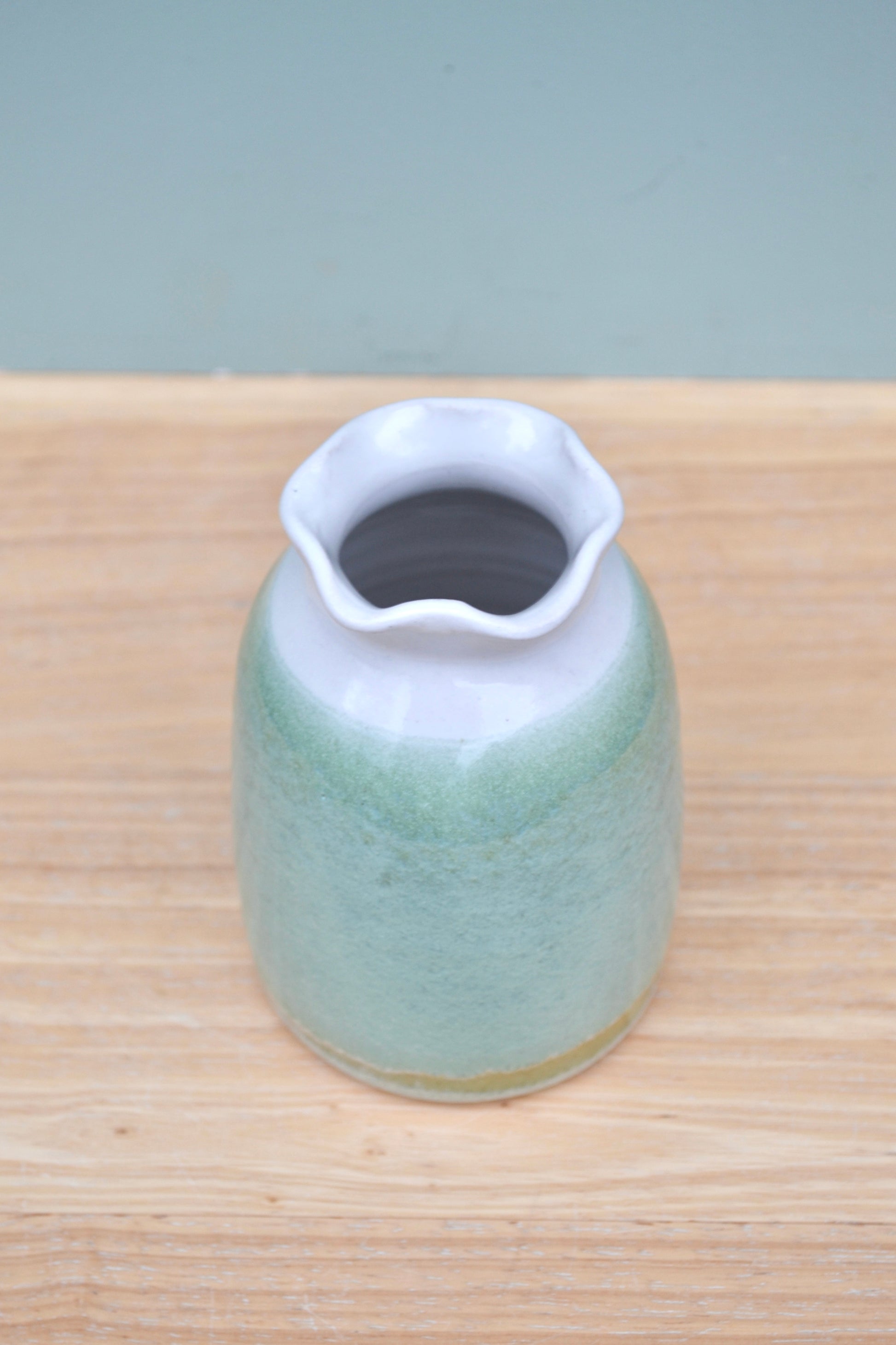 Frill Edge Vase- Apple Blossom and White