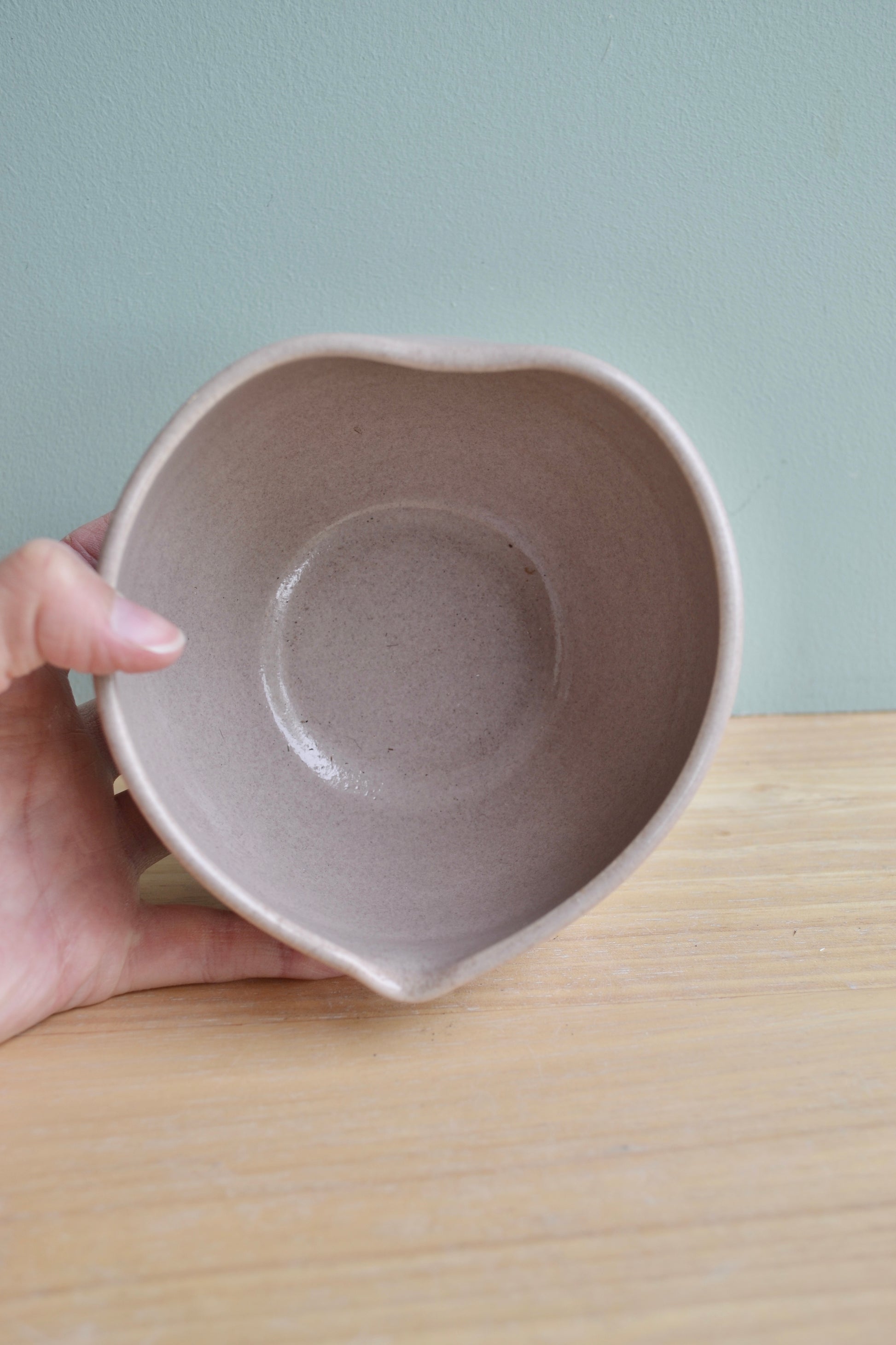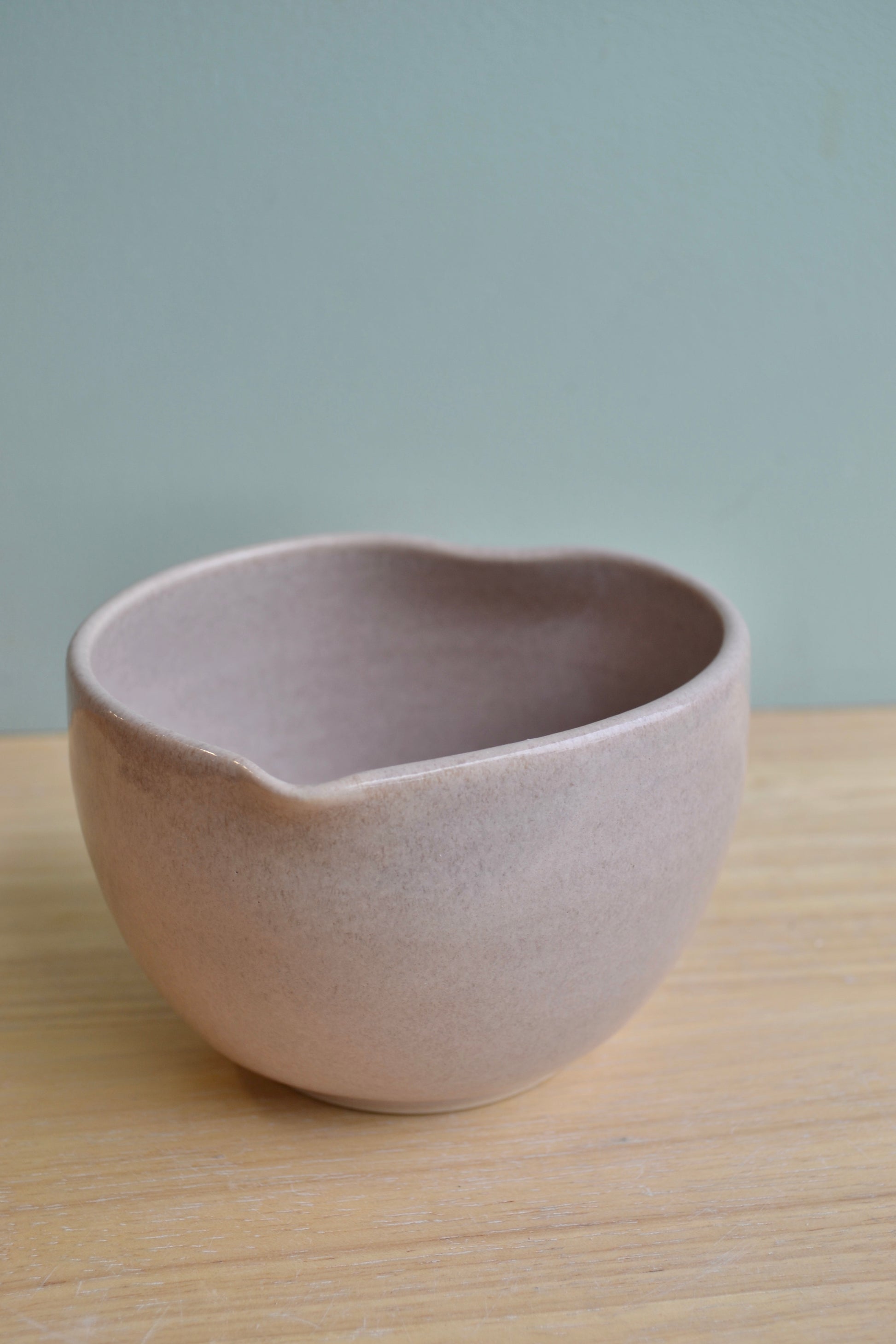 Hand-thrown white stoneware heart bowl with my own dusty pink glaze.
