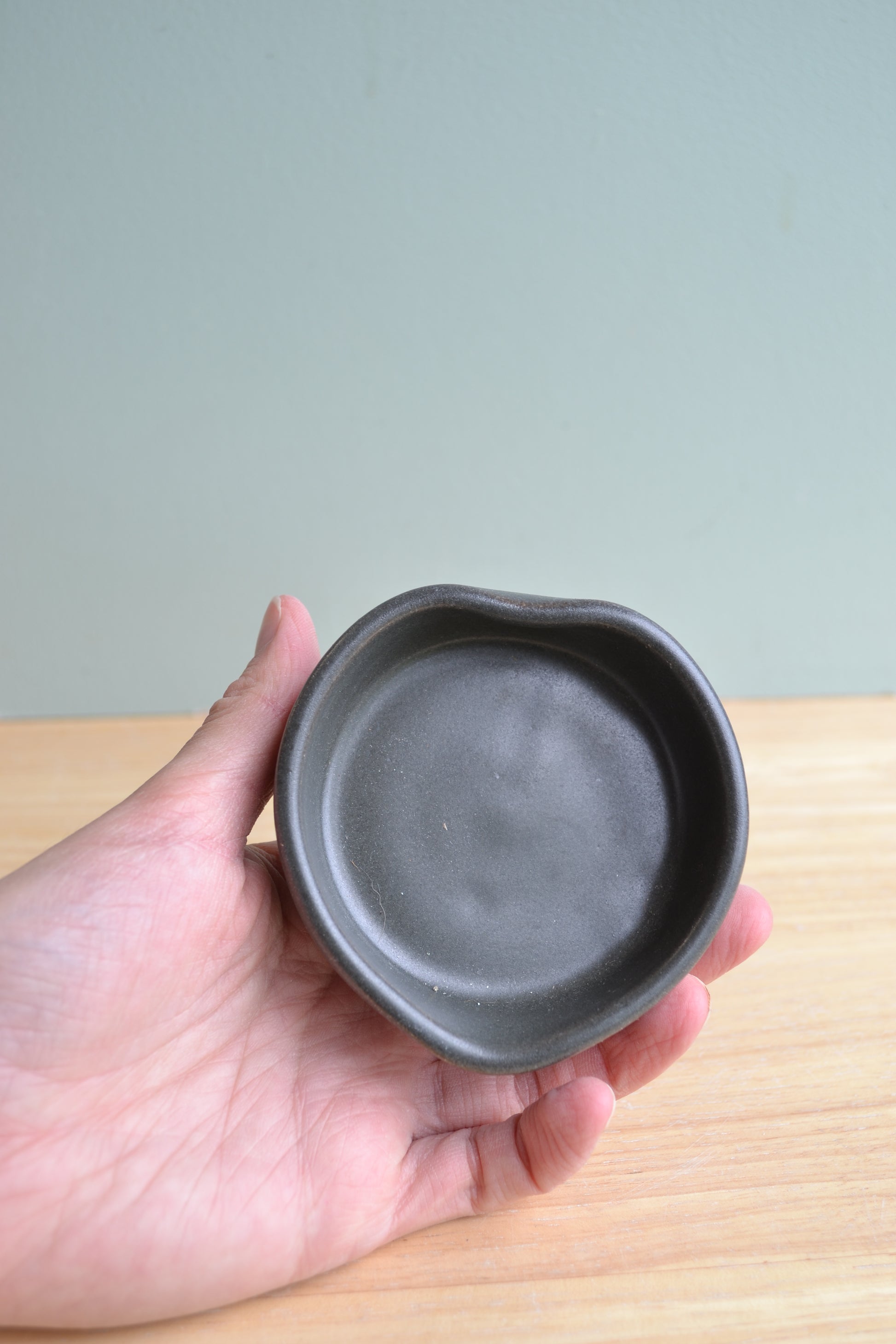 Hand-thrown white stoneware heart trinket dish with my own grey glaze.