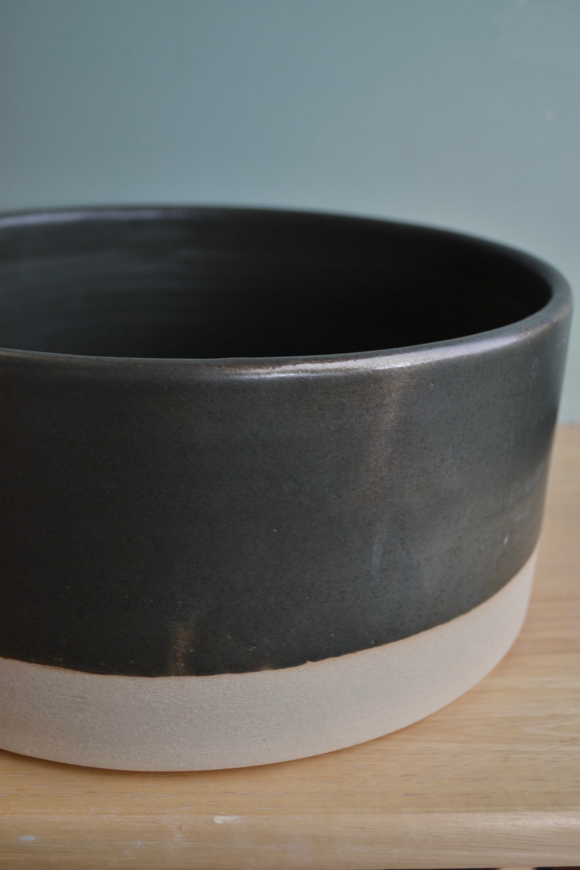 Hand-thrown white stoneware planter decorated with my own grey glaze.