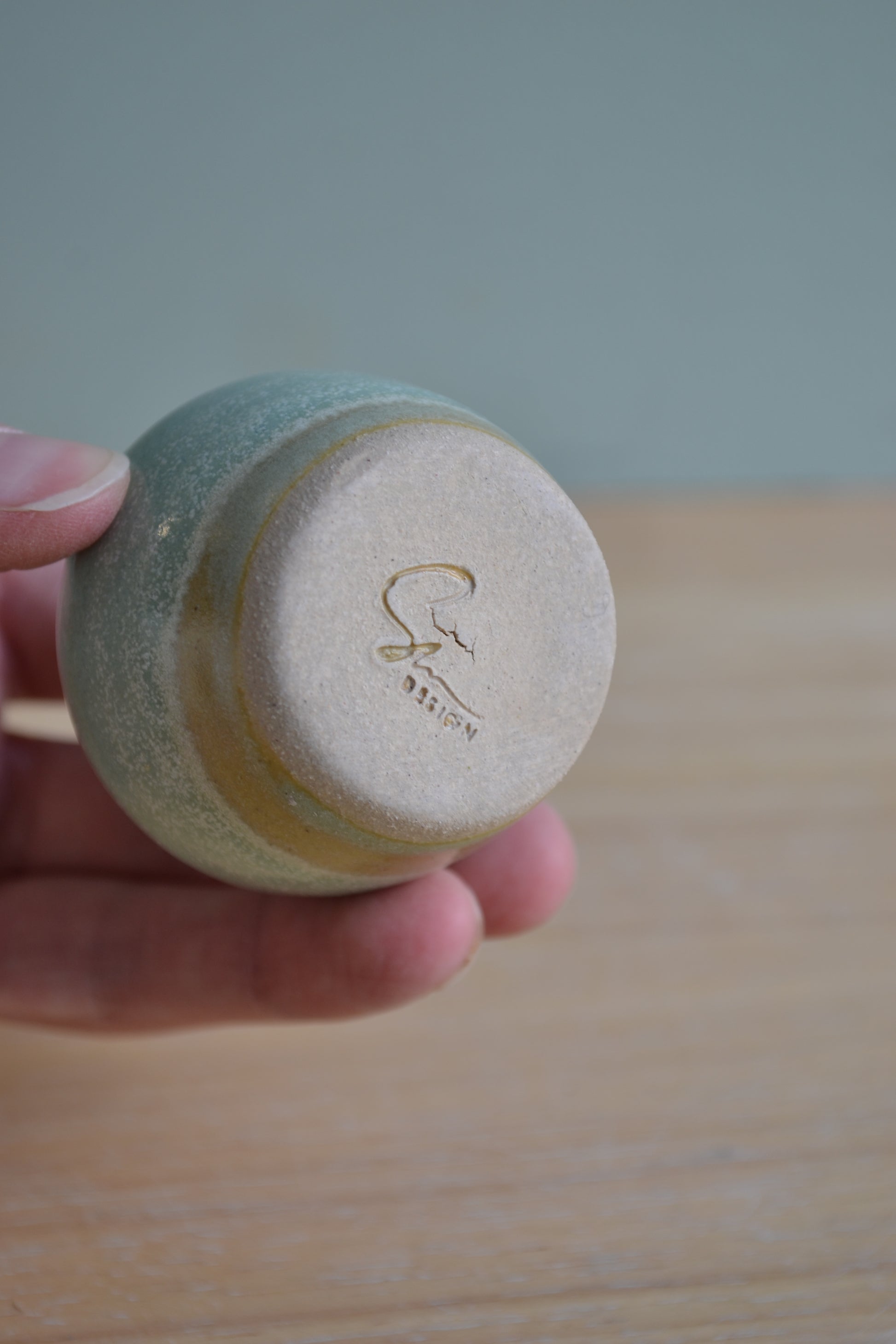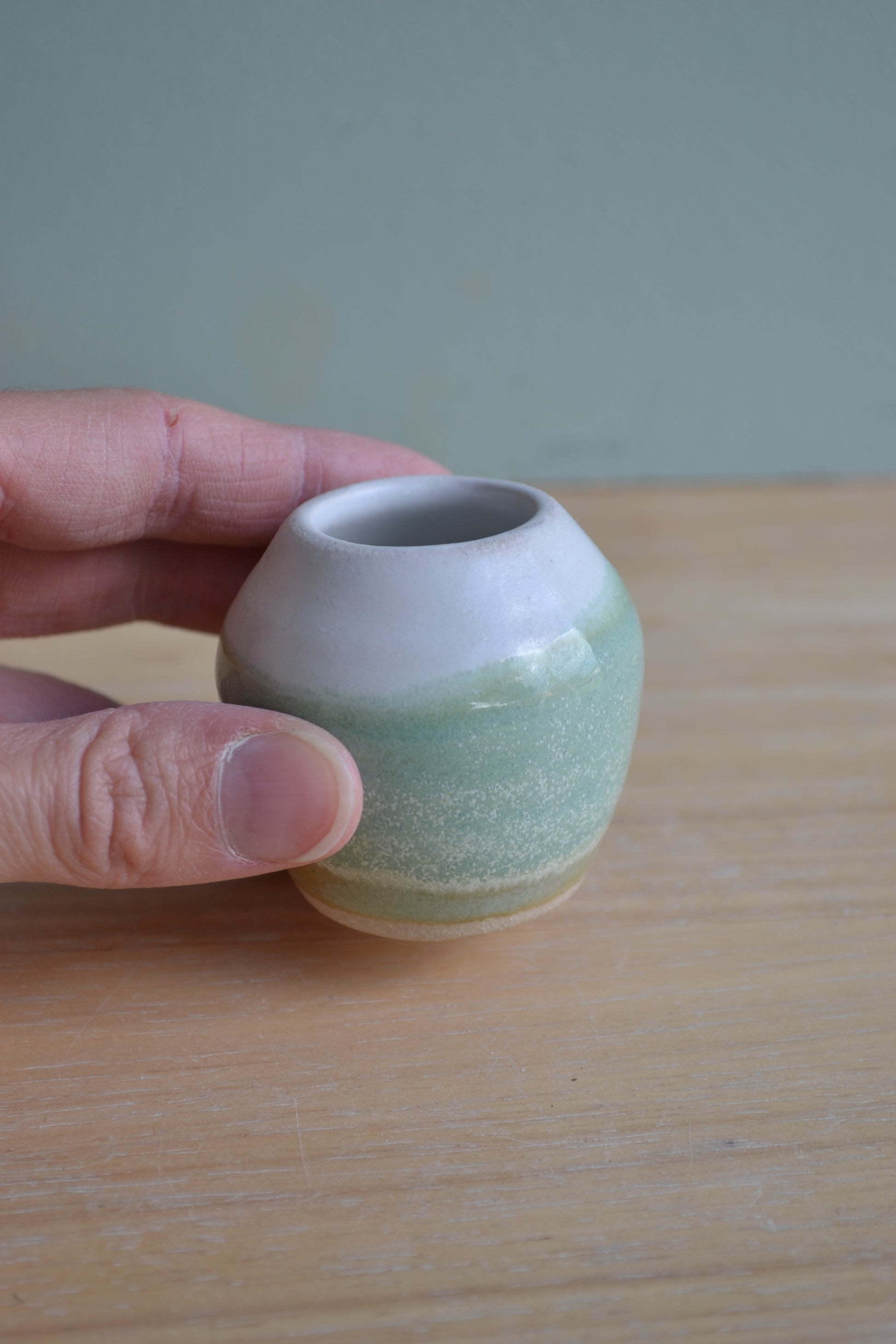 Hand-thrown white stoneware mini vase with my own green and white glaze.