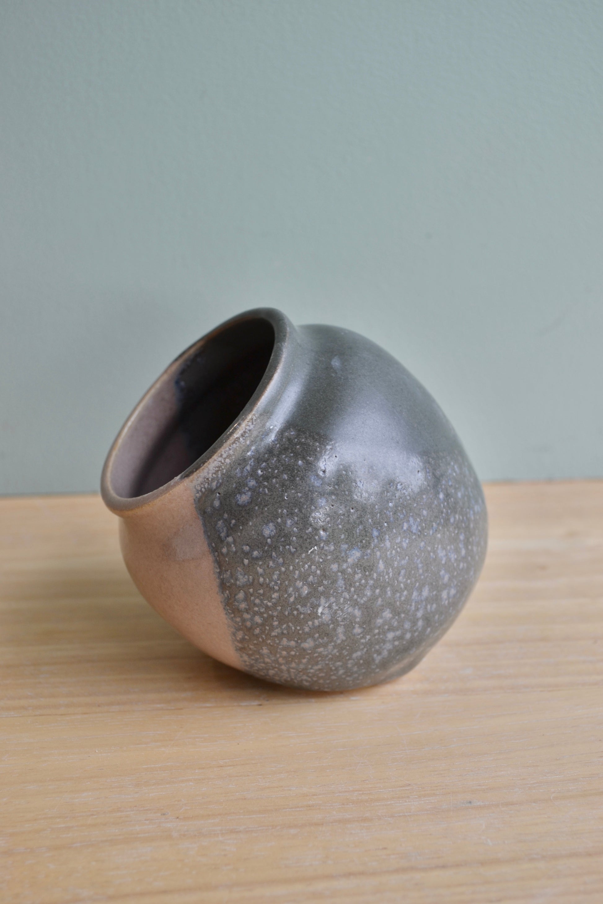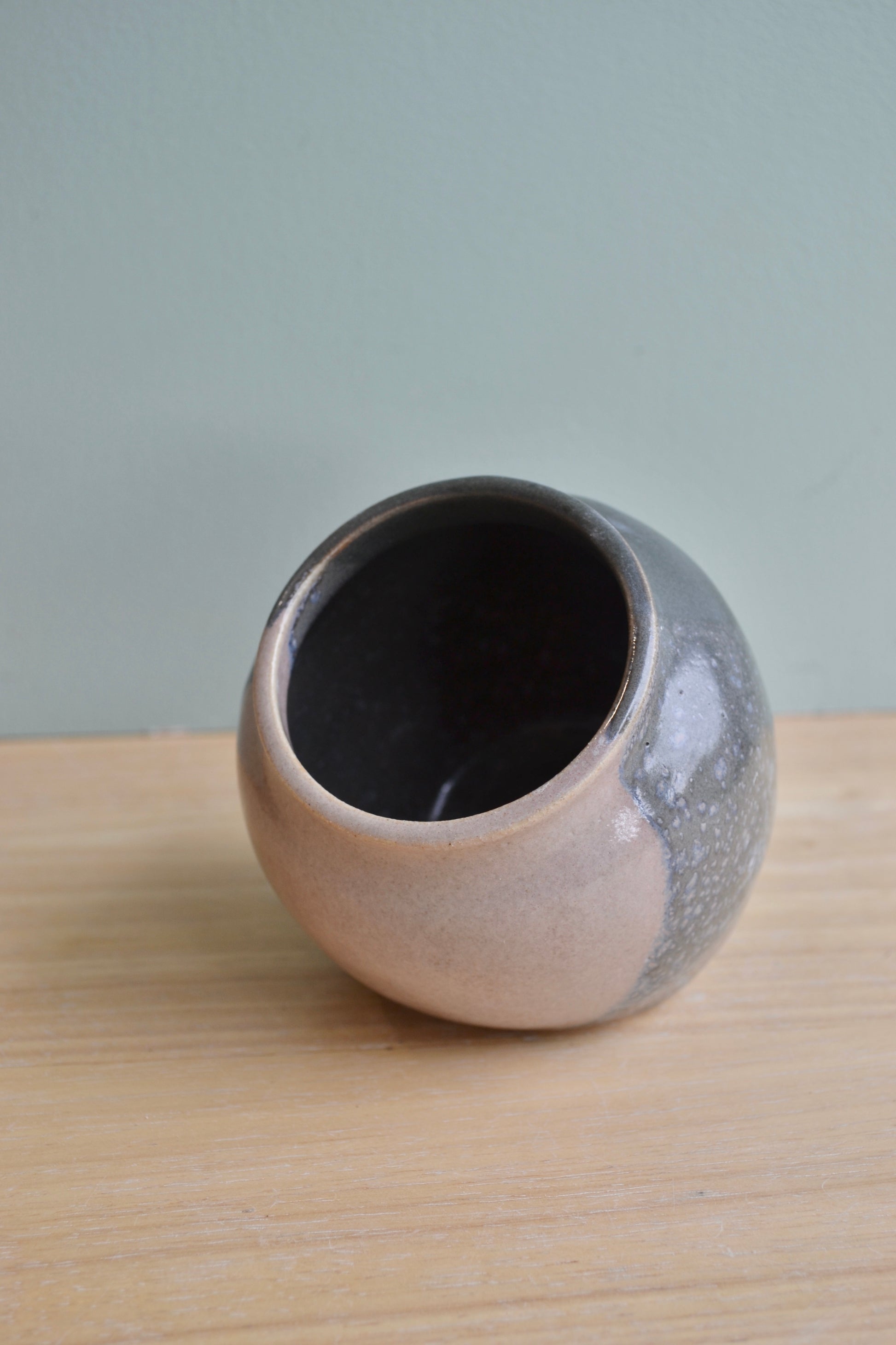 Hand-thrown white stoneware salt pig with my own unique pink and grey glaze.