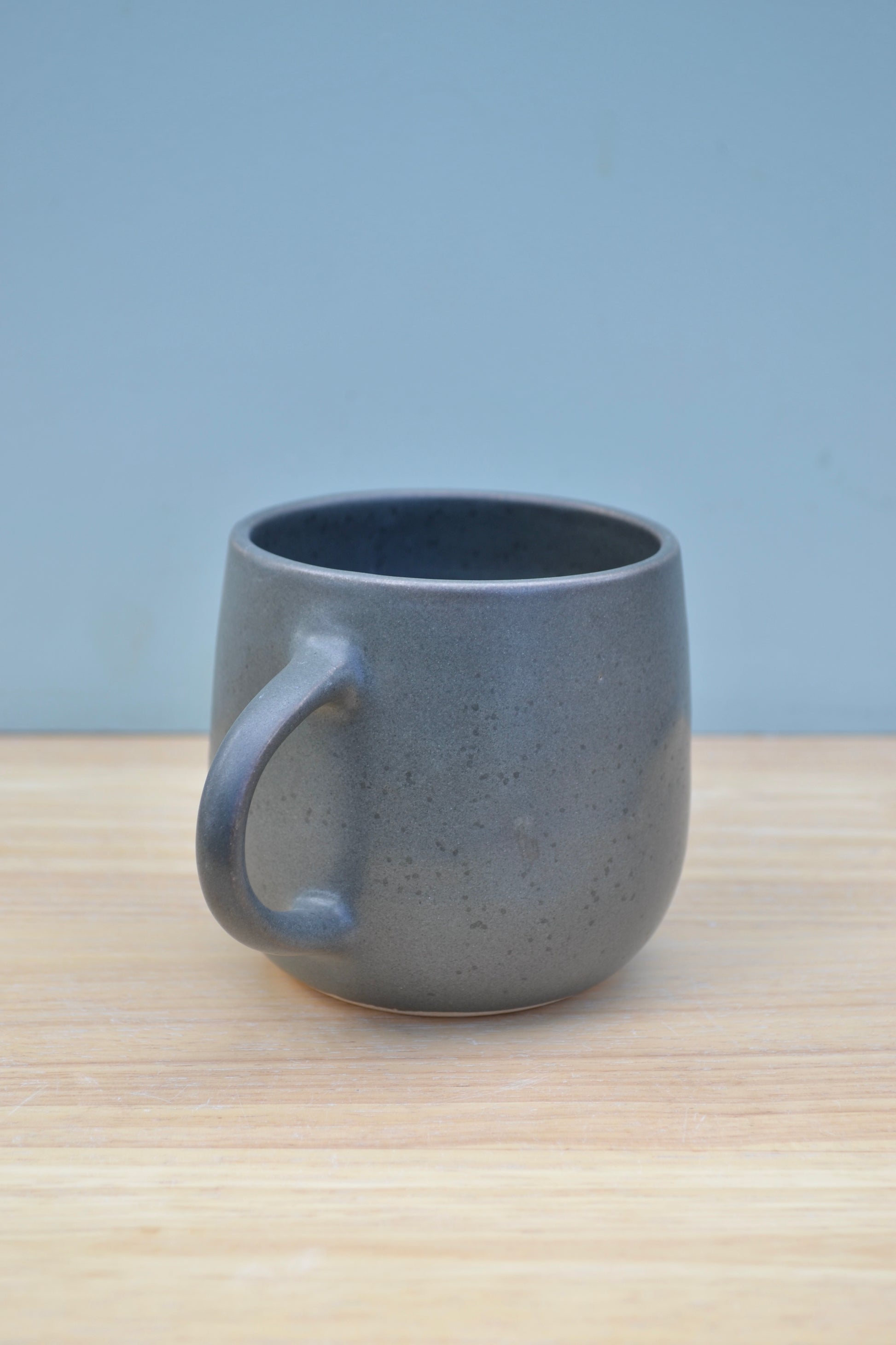 Hand-thrown white stoneware small mug with my own grey glaze.