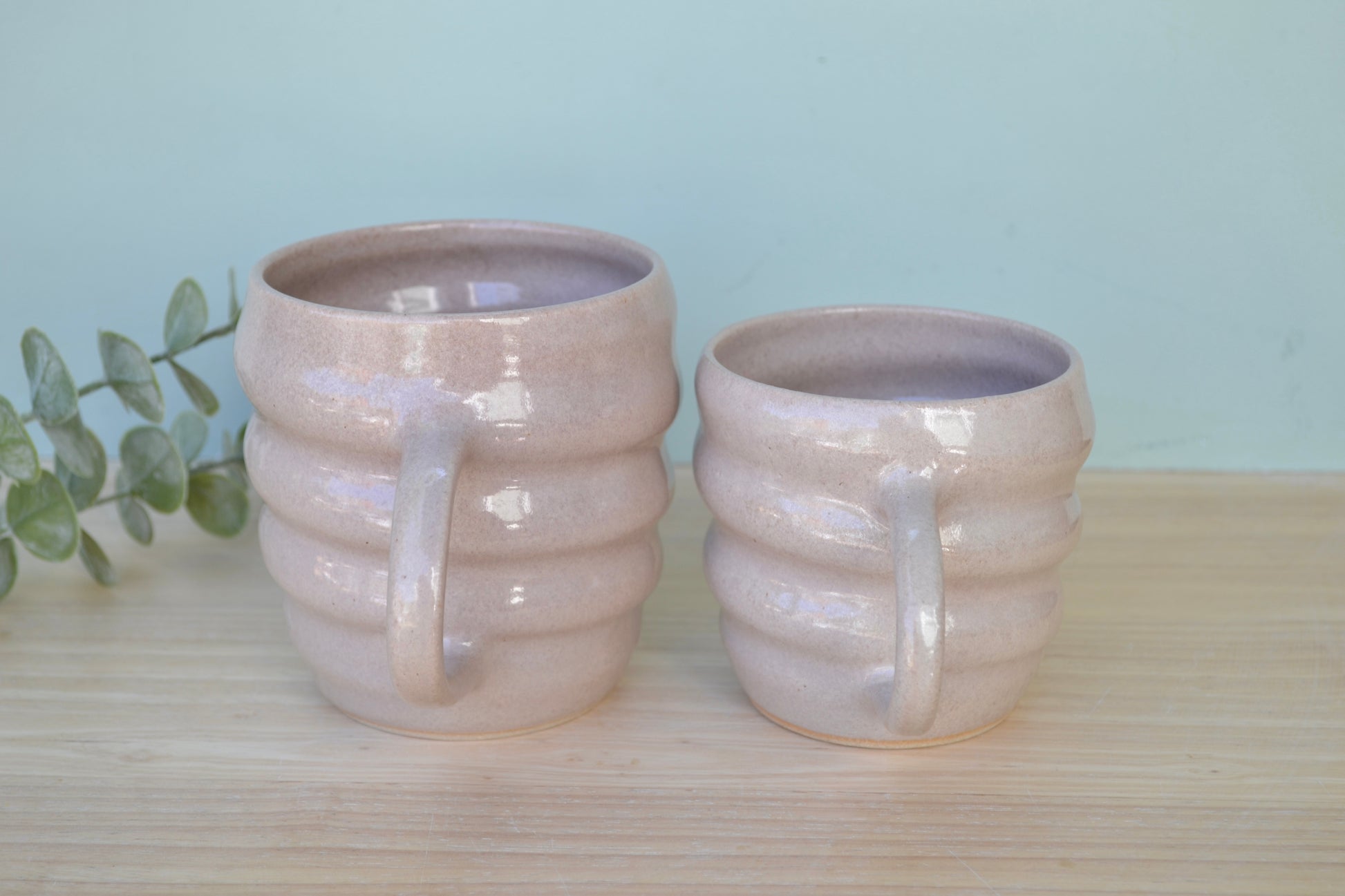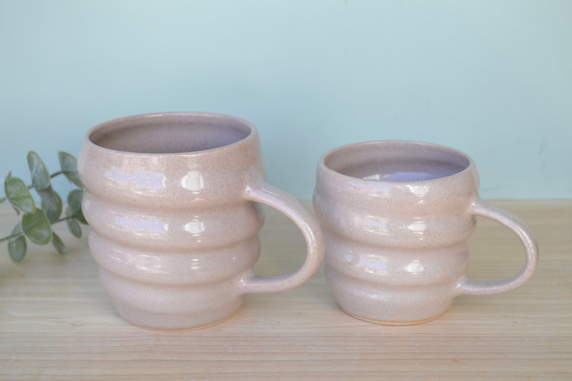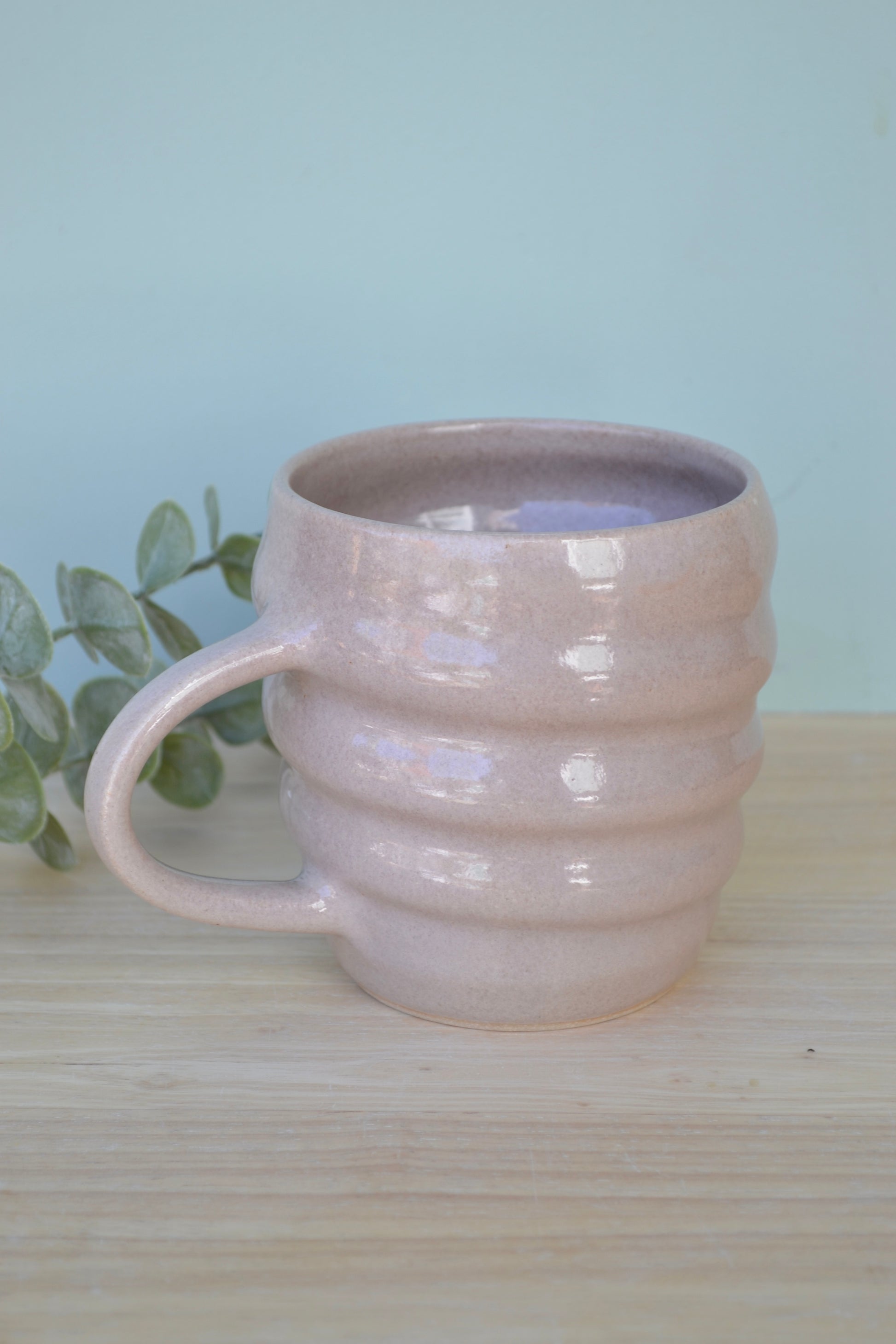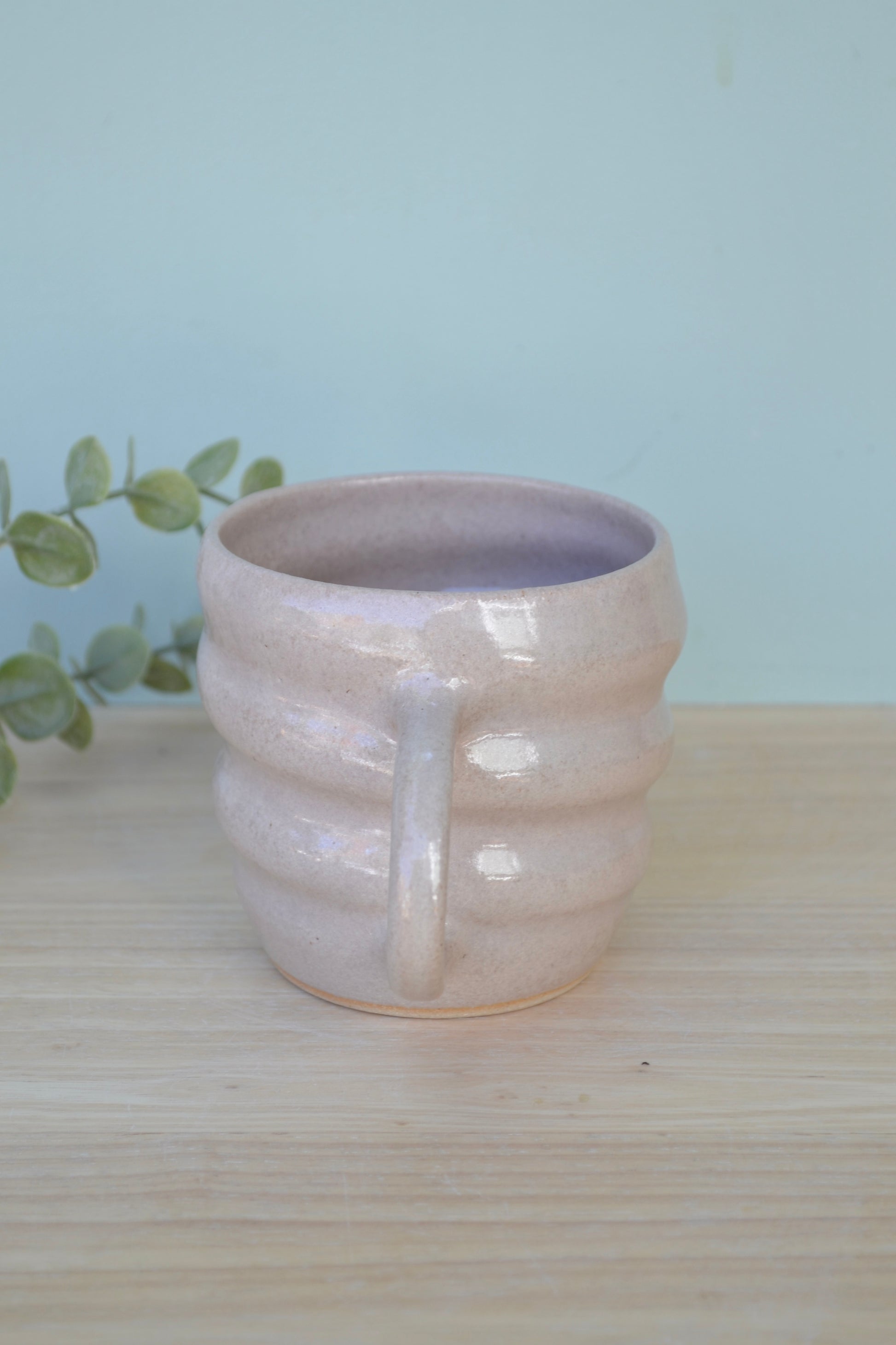 Hand-thrown stoneware mug with added thrown spiral. The spiral allows the mug to sit comfortably in the hand.