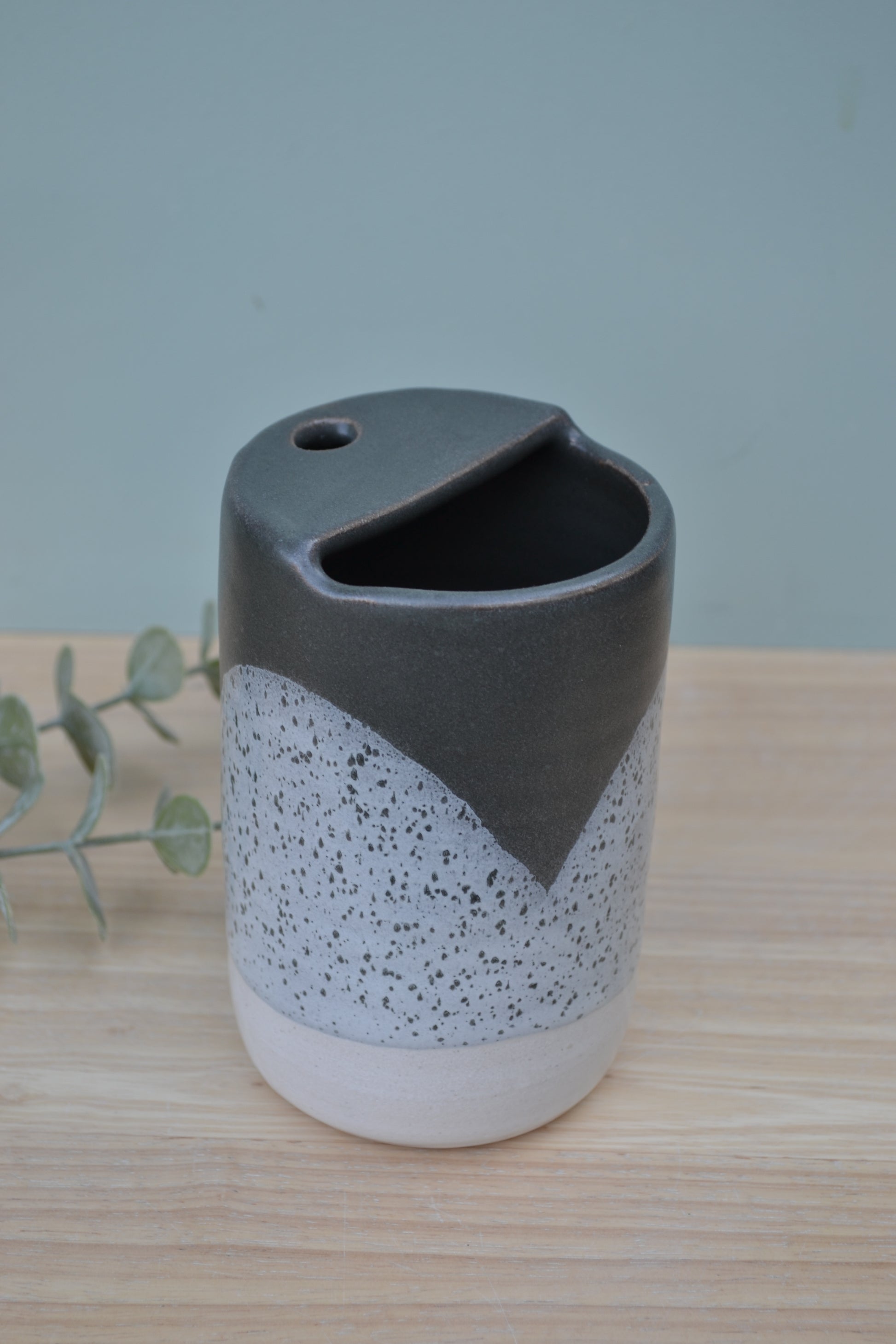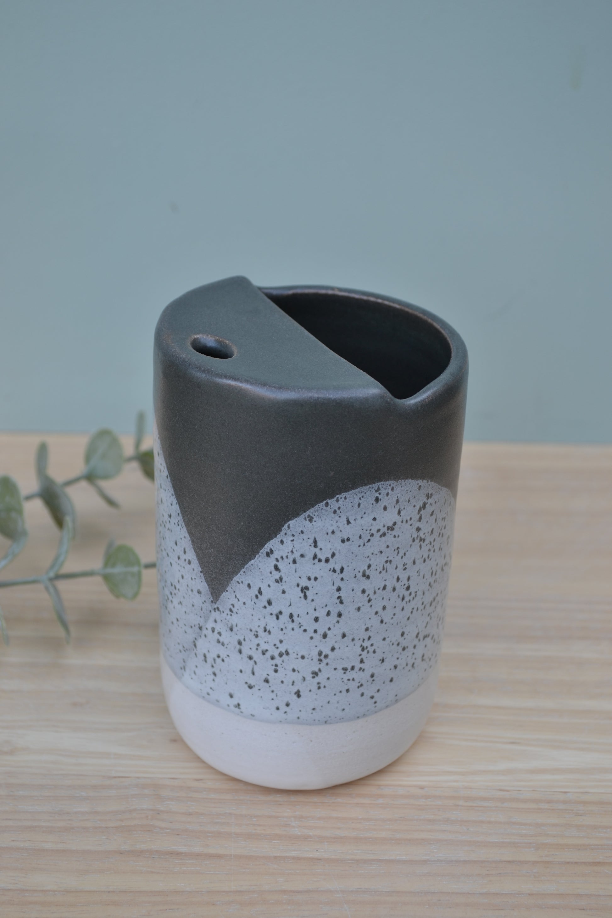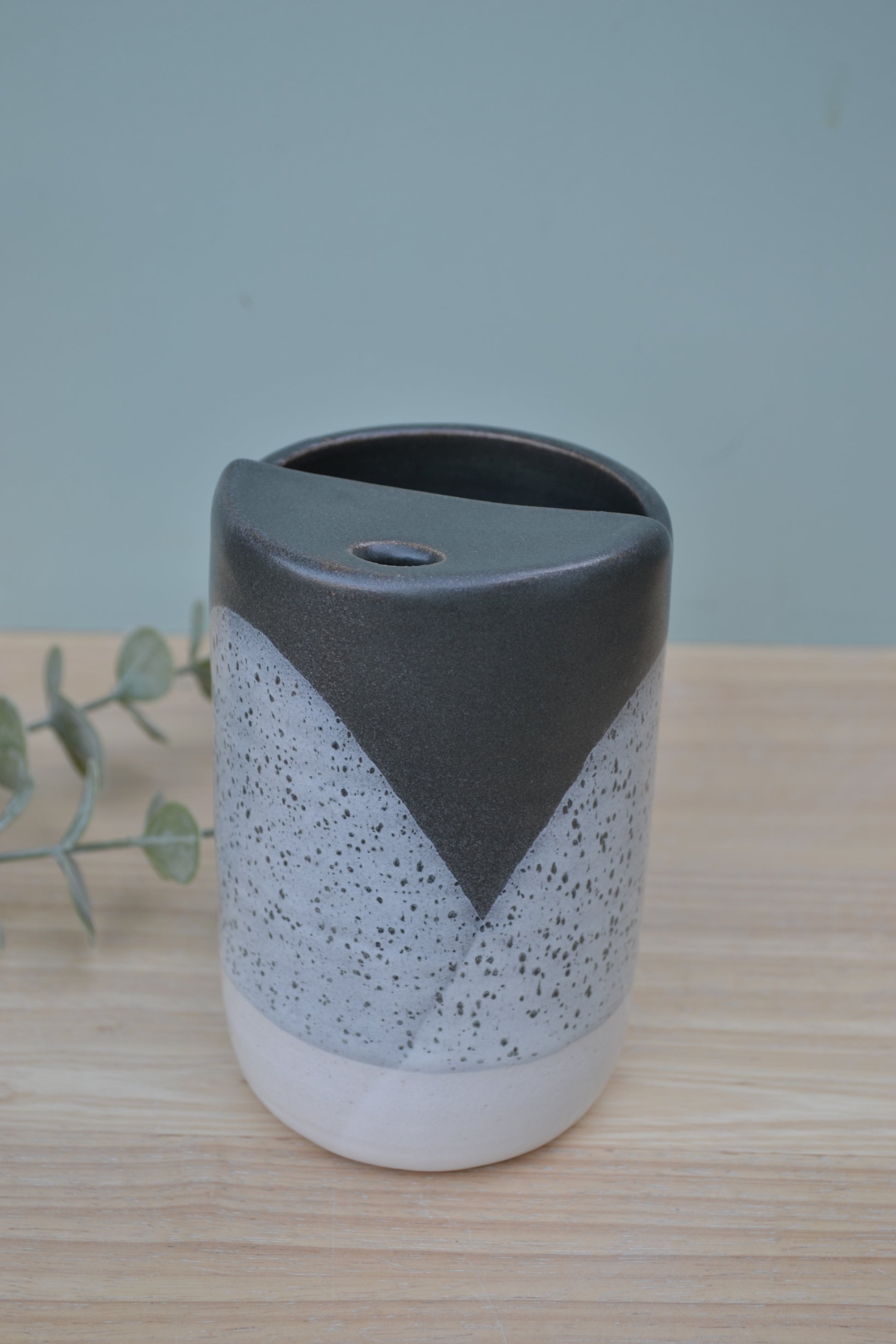 Hand-thrown stoneware travel cup perfect for hot or cold drinks.