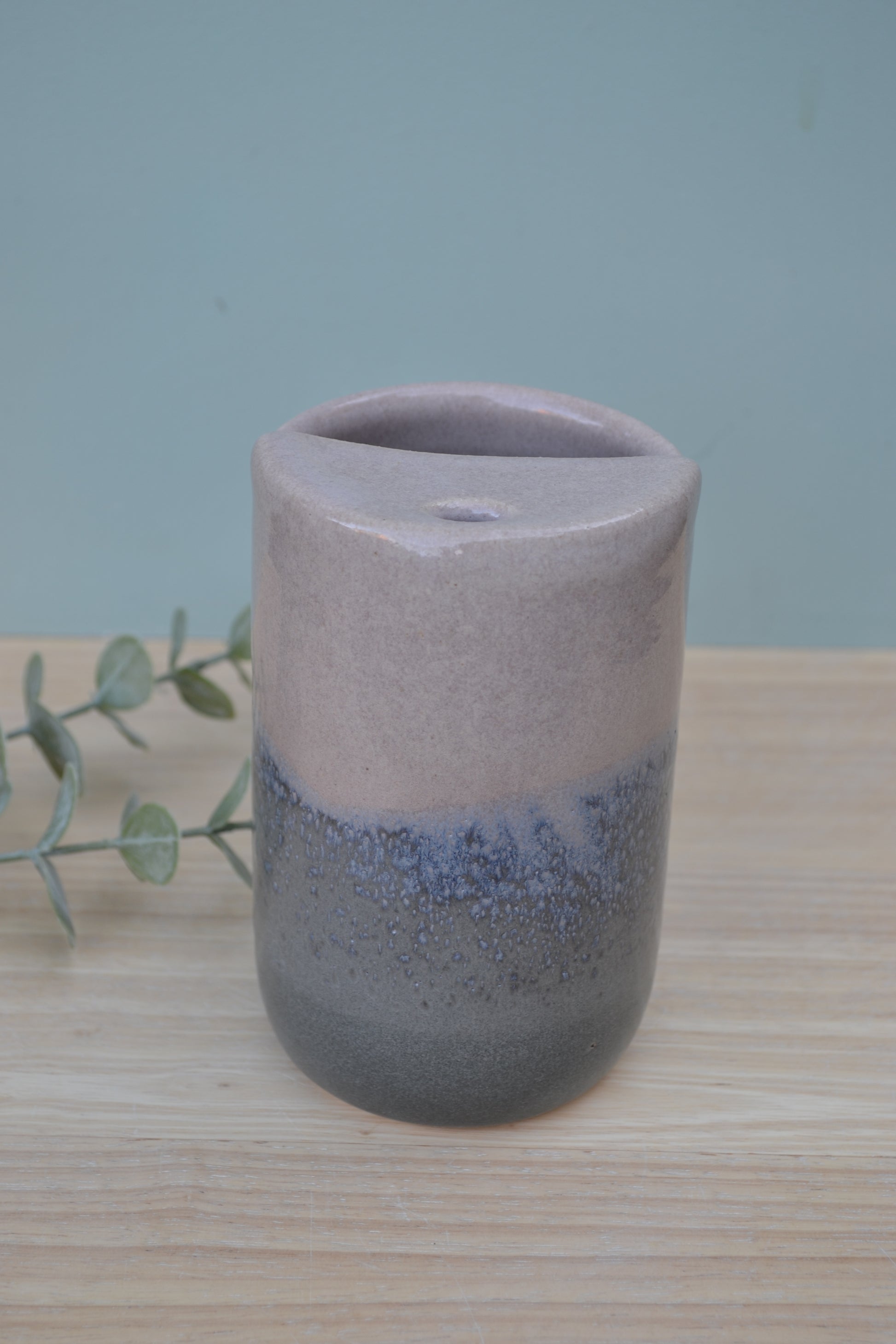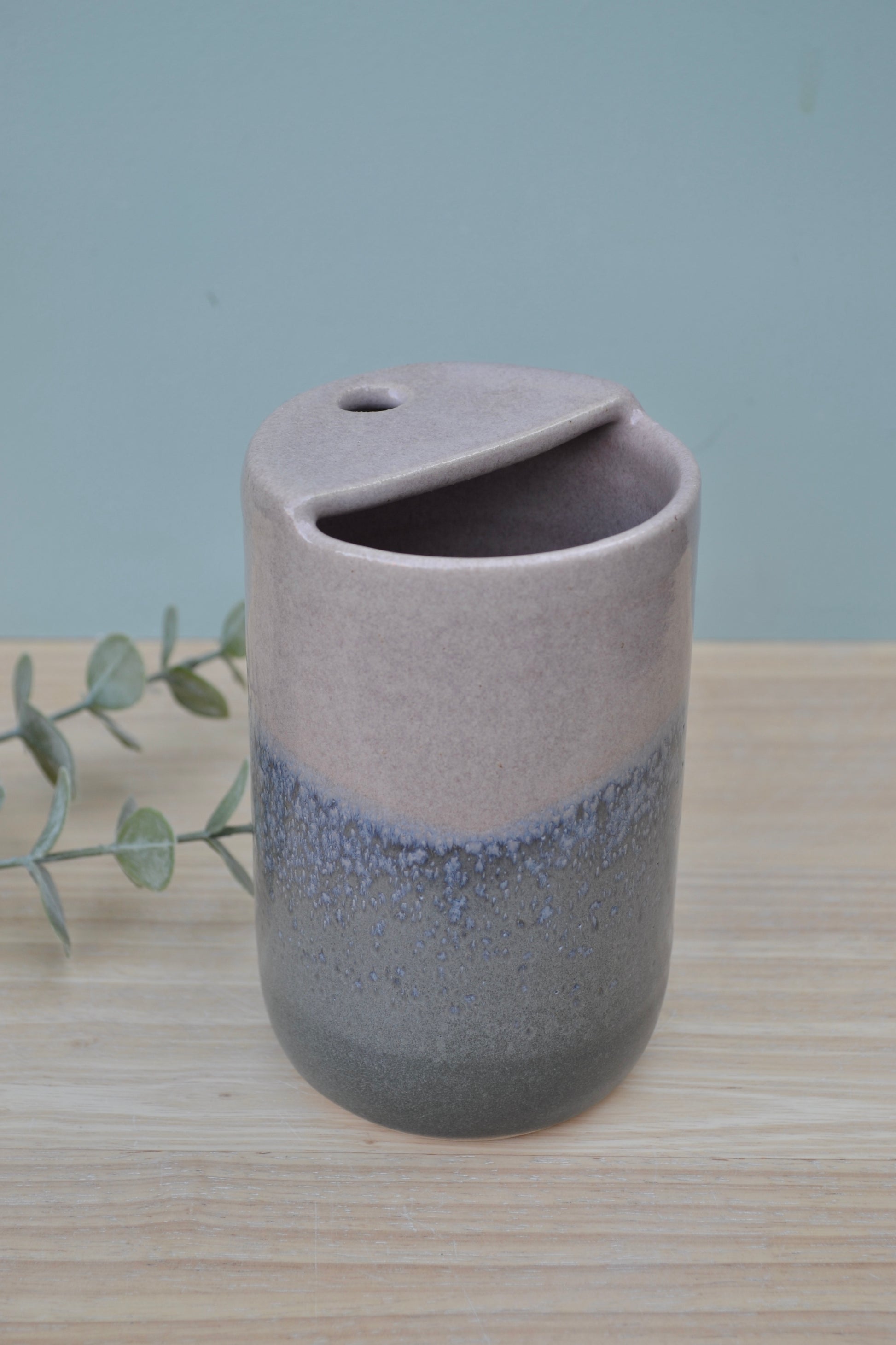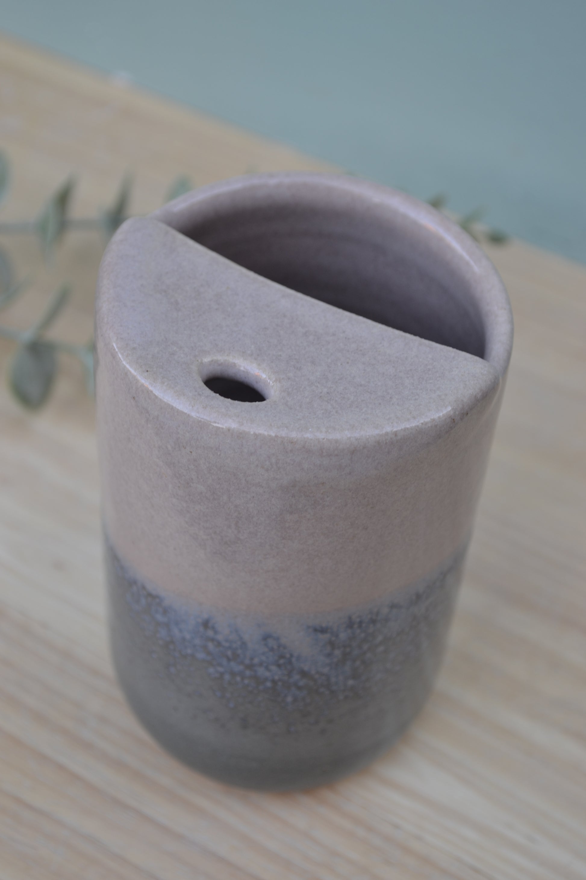 Hand-thrown stoneware travel cup perfect for hot or cold drinks.